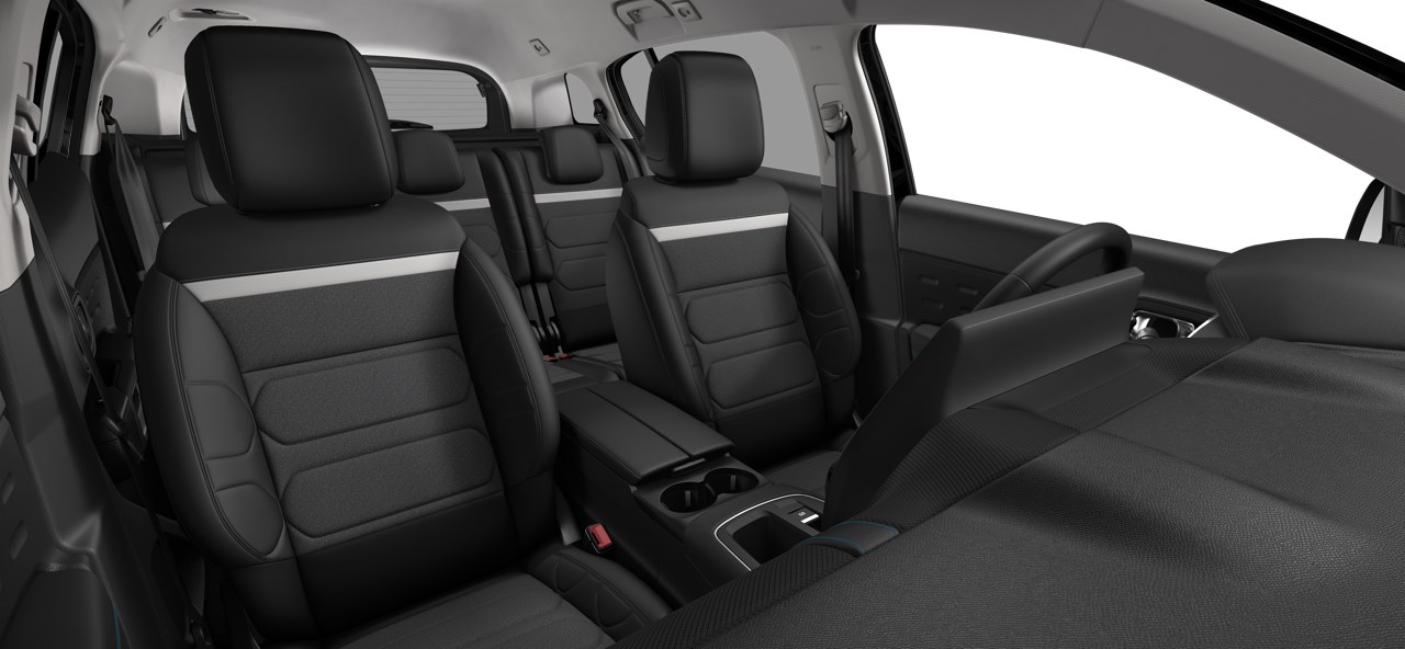 • 3 individueel verschuifbare (15 cm), verstelbare en inklapbare zitplaatsen van gelijke grootte op 2de zitrij