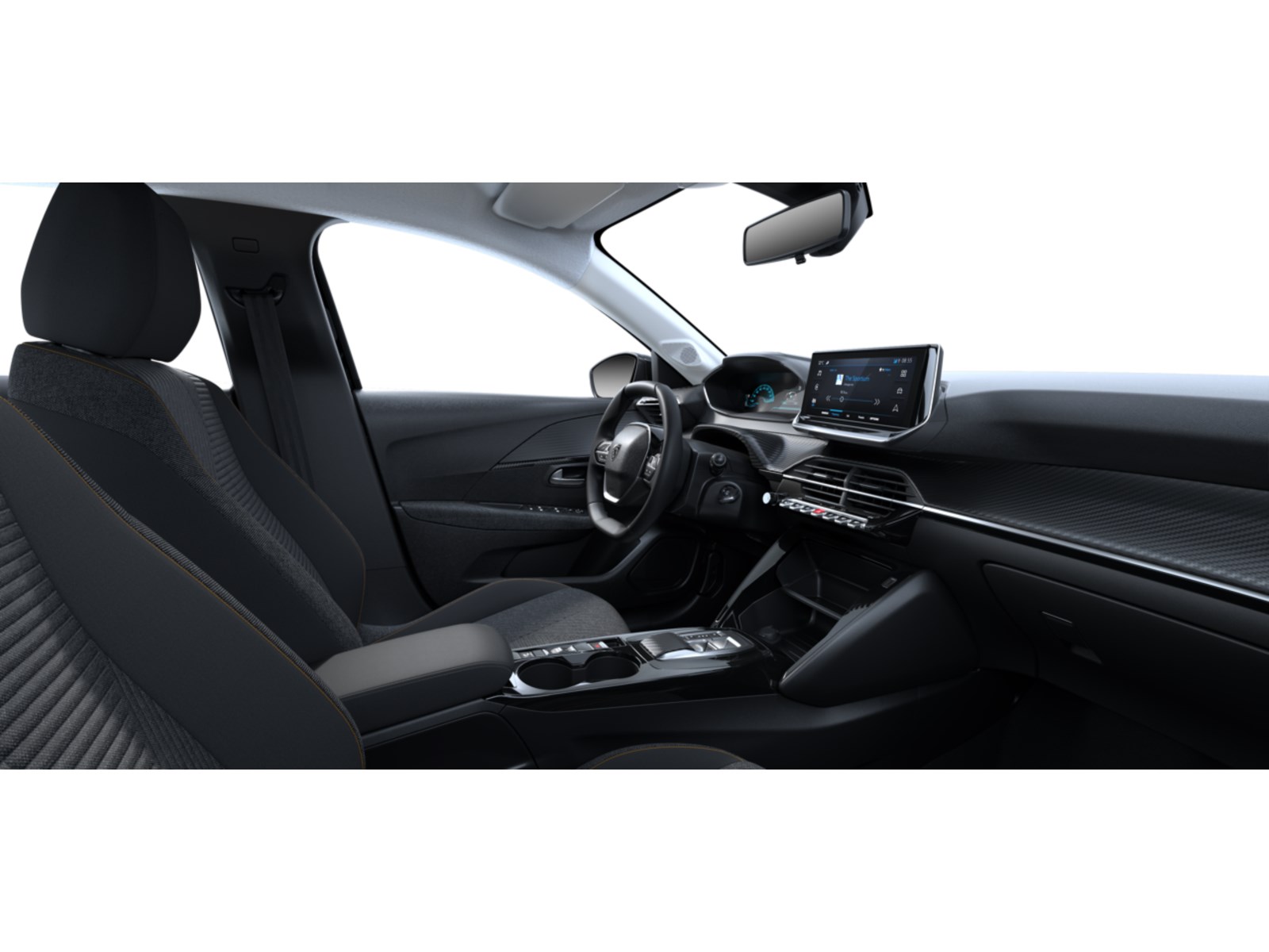 • Dashboard in zacht materiaal met carboneffect en hoogglans zwarte sierstrip met chromen bies